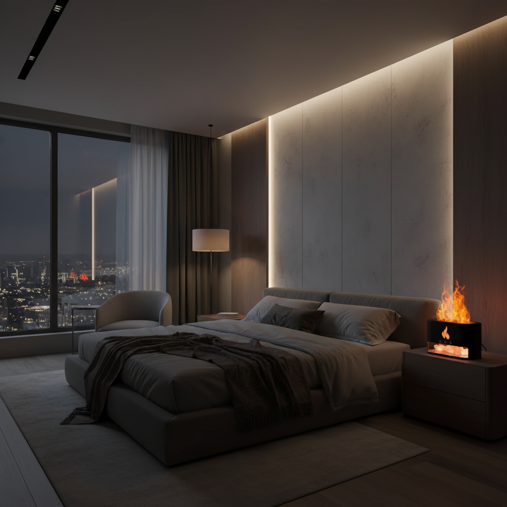 Most people spend their nights under harsh blue light, suppressing melatonin and keeping their brains in a state of high alert. The Aura-Flame™ is not just a humidifier—it is a Bio-Sync™ ecosystem engineered to reset your circadian rhythm and transform your living space into a restorative sanctuary.